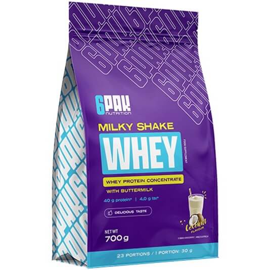 6PAK Milky Shake Whey 700g to odżywka białkowa, która udowadnia, że zdrowe odżywianie i znakomity smak mogą iść w parze. Dzięki wyjątkowej formule opartej na wysokiej jakości koncentracie białka serwatkowego (WPC instant) oraz naturalnej maślance, produkt tworzy kremowy, aksamitny shake – nawet po wymieszaniu z wodą!