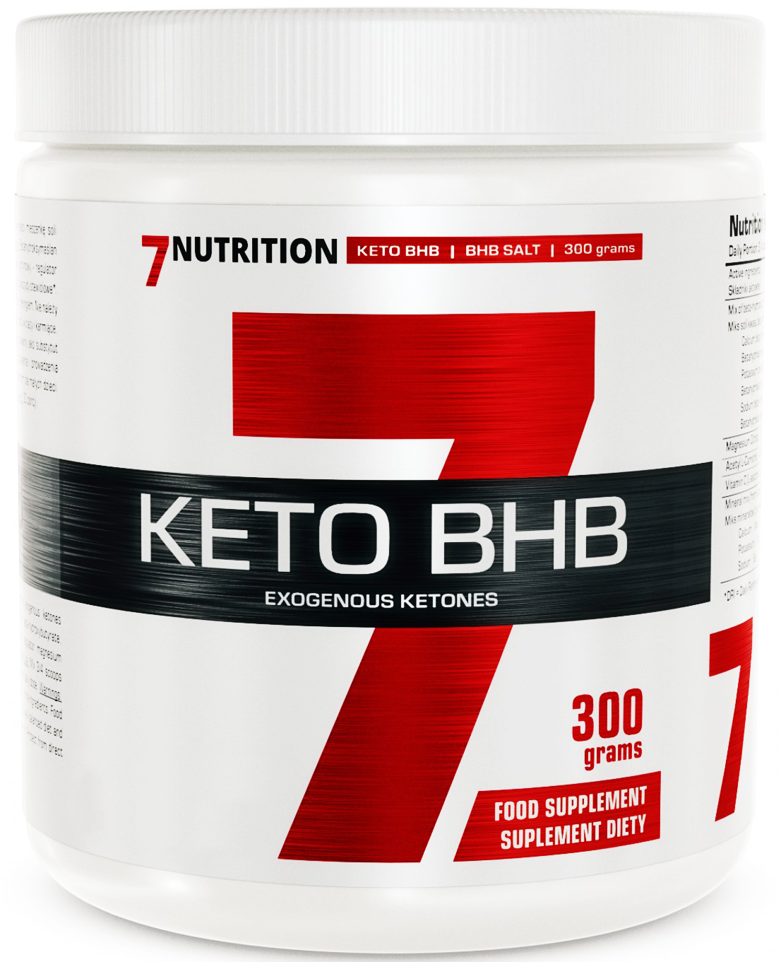 7Nutrition KETO BHB 300g to suplement diety w proszku skierowany do osób będących na diecie ketogenicznej. KETO BHB wspomaga proces odchudzania, spalania tkanki tłuszczowej, a jednocześnie przeciwdziała utracie energii w trakcie trwania diety oraz poprawia zdolność skupienia uwagi.