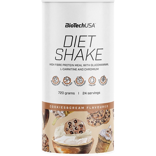 BioTech USA Diet Shake to najwyższej jakości wysokobiałkowy zamiennik dietetycznego posiłku na bazie białka serwatkowego, bogaty w błonnik, L-karnitynę, superfoods oraz minerały. BioTech USA Diet Shake został skomponowany w kierunku kompleksowego rozwiązania do modelowania estetycznej sylwetki. Priorytetem było stworzenie produktu wolnego od konserwantów, dodatku cukru oraz z wysokiej jakości białkiem. Większość zamienników produktów na rynku zawiera dodatek niskiej jakości węglowodanów, często o wysokim indeksie glikemicznym oraz są to produkty bazujące głównie na niskiej jakości białkach roślinnych (sojowe i inne).