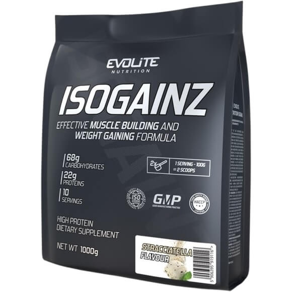 Evolite IsoGainz to kompaktowa, skuteczny gainer, w którym głównym źródłem białka jest izolat białka serwatkowego. Wysokokaloryczna formuła idealna dla osób, którym zależy na lekko przyswajalnym budulcu i dużej ilości kalorii. Odżywka zapewnia ponad 22% protein i mniej niż 5% cukrów.