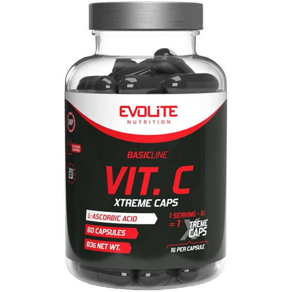 Evolite Vitamin C Xtreme - witamina C w kapsułkach o wysokiej zawartości 1000 mg kwasu l-askorbinowego. Evolite Vitamin C Xtreme jest polecana dla sportowców, u których zapotrzebowanie na mikroskładniki jest zawsze zdecydowanie wyższe, ale także dla osób o mniejszej aktywności fizycznej, w celu wspierania systemu odpornościowego, przeciwdziałania stanom zapalnym. Witamina C to przede wszystkim także silny antyutleniacz oraz wsparcie dla syntezy kolagenu.