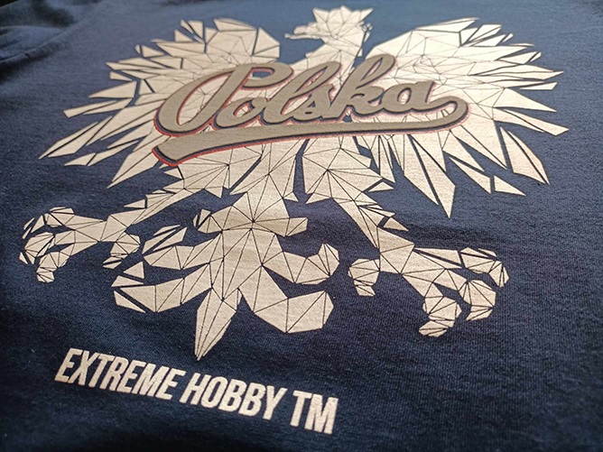 Design: Z przodu koszulki znajduje się nadruk z godłem narodowym (orłem) oraz napisem "Polska", podkreślający patriotyczny charakter. Dodatkowo, z tyłu na karku umieszczono subtelny nadruk z logo Extreme Hobby i napisem "Polska". Kolor: Navy - głęboki odcień granatu, nadający koszulce elegancji i uniwersalności.