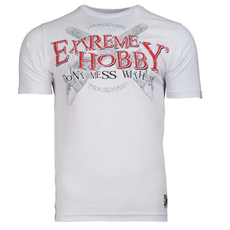 Extreme Hobby T-Shirt Don't Mess to biała koszulka renomowanej marki Extreme Hobby uszyta i zaprojektowana od podstaw ze 100% wysokogatunkowej bawełny o gramaturze 210g/m z wysokiej jakości nadrukami wykonanymi metodą sitodruku z efektami HD i gel. Koszulka jest bardzo komfortowa, wytrzymała, posiada nadruk z przodu i na całej powierzchni pleców z napisem "Don't Mess with Me" oraz dodatkowe wszywki (na rękawku i na dole z lewej strony).