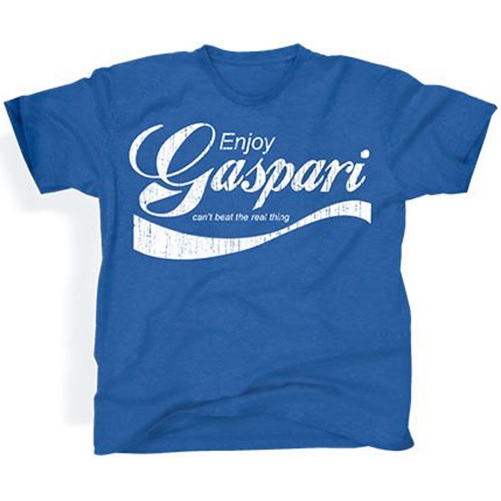 Gaspari Nutrition T-shirt Enjoy Gaspari Blue - koszulka koloru błękitnego wykonana w 100% z wysokiej jakości oddychającej bawełny czesanej. Mocne podwójne obszycia i przyjemna w dotyku faktura sprawiają, że koszulka jest komfortowa i wytrzymała, dzięki czemu nadaje się zarówno na co dzień i do uprawiania sportów. T-shirt sygnowany marką jednego z najlepszych kulturystów przełomu lat 80 i 90-tych - Rich'a Gaspari'ego posiada z przodu napis "Enjoy Gaspari can't beat the real thing" w stylistyce najpopularniejszego napoju świata.