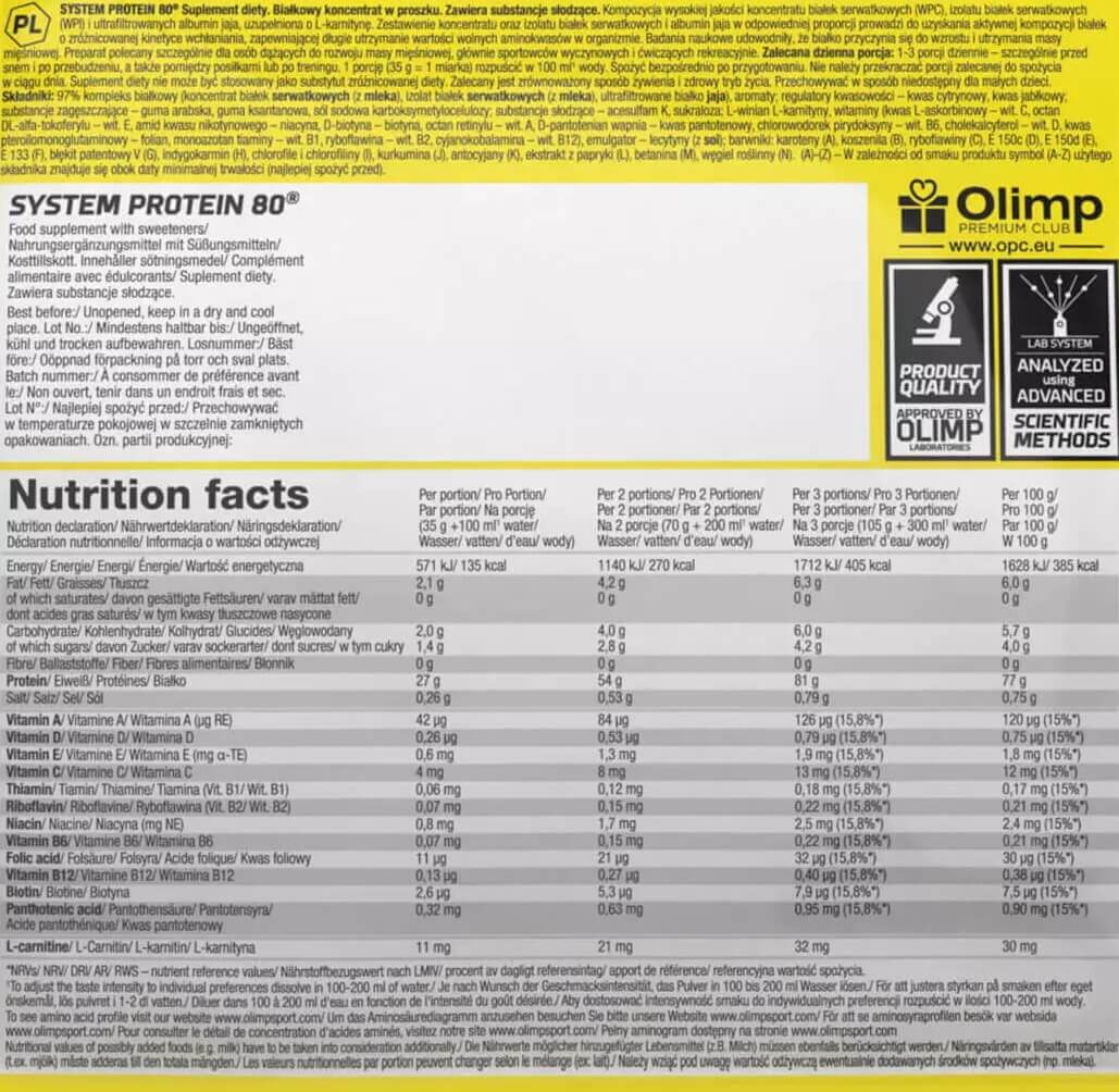 System Protein 80 700gSystem Protein 80 - etykietaskład odżywki System Protein 80