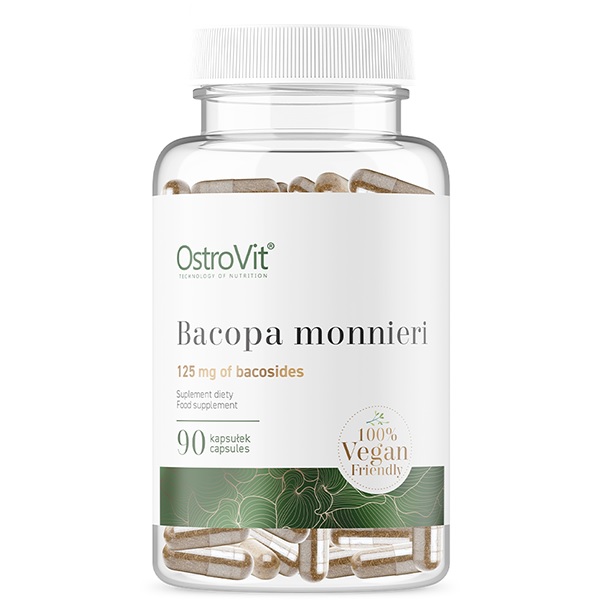 OstroVit Bacopa monnieri 250 mg - Bakopa Drobnolistna (90 kapsułek wegańskich) to wysokiej jakości preparat, który przenosi świetnie wspomaga funkcje psychiczne. Bakopa drobnolistna, znana również jako Brahmi, to roślina o długiej tradycji stosowania w ajurwedzie, indyjskim systemie medycznym, jako roślina wspomagająca funkcje mózgu i zdolność do nauki.