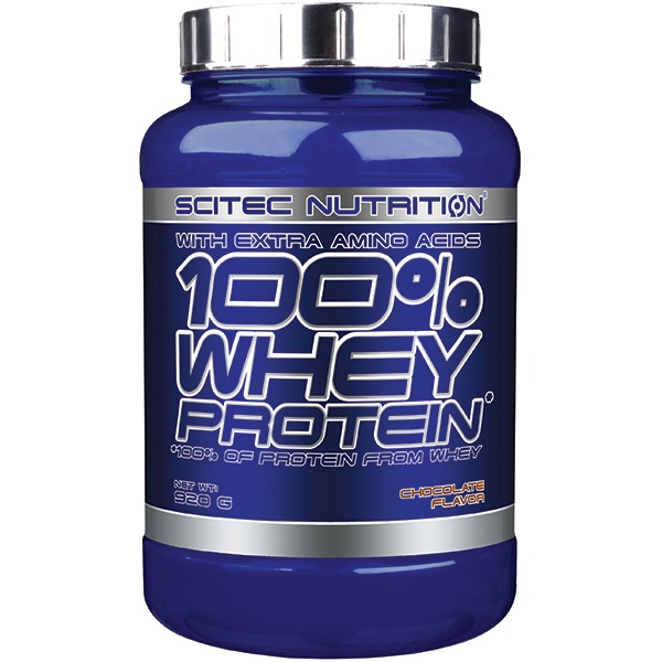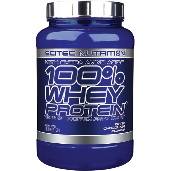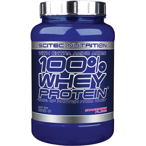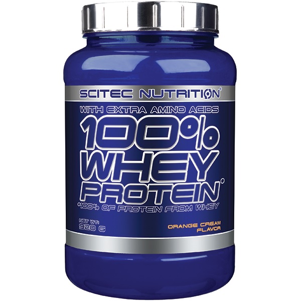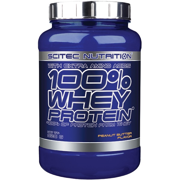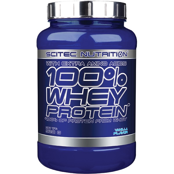 Scitec 100% Whey Protein 920g to wysokiej jakości odżywka proteinowa, oparta na ultrafiltrowanym koncentracie białka serwatkowego z dodatkiem matriksu (1650 mg na porcję) wolnych aminokwasów l-glutaminy, tauryny. Dostępny w dużej ilości wyśmienitych smaków. Zawiera kompletny profil aminokwasowy, w tym wszystkie aminokwasy niezbędne (EAA). Ten produkt może być doskonałym źródłem białka podczas diety rozbudowujacej czystą masę mięśniową, lub podbicie protein podczas diety redukcyjnej (odchudzającej). Ultrafiltrowany koncentrat białek serwatkowych jest jednym z najszybciej wchłanialnych (po hydrolizacie oraz izolacie serwatki) form białka. Jest białkiem pełnowartościowym o bardzo dużym potencjale anabolicznym i antykatabolicznym. Aż 47,5% puli aminokwasów to aminokwasy tak ważne jak BCAA, arginina, glutamina i tyrozyna! Aminokwasy egzogenne to 50% z całości