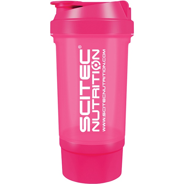 Scitec Traveller Shaker - kolor różowy (pojemność 500ml + dokręcany pojemnik na proszek/kapsułki) to wysokiej jakości wykonanie i trwałość. Szejker Traveller posiada gwintowaną zakrętkę i mocny zatrzaskowy ustnik. Jest to szejker szczelny i praktyczny, o ergonomicznym kształcie i atrakcyjnym estetycznym wyglądzie. Posiada dobrze wyprofilowane sitko, które skutecznie wymiesza każdą odżywkę w kilka sekund. Szejker Traveller jest dostępny w kilku wersjach kolorystycznych, posiada z dwóch stron nadruk Scitec Nutrition.