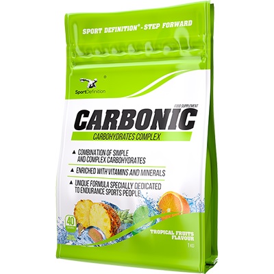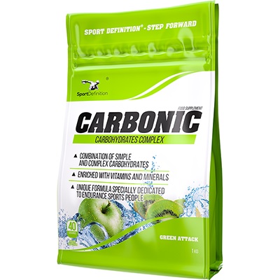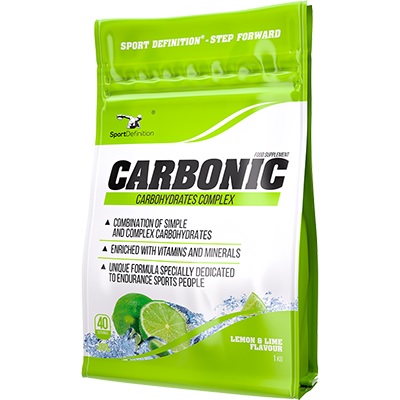 SportDefinition Carbonic jest wysokiej jakości odżywką węglowodanową w postaci proszku do przygotowania orzeźwiających napojów. Dostarcza energii przed i w trakcie treningu oraz regeneruje organizm po jego zakończeniu. Carbonic zawiera węglowodany proste (55%) złożone (45%) oraz najważniejsze witaminy i minerały.