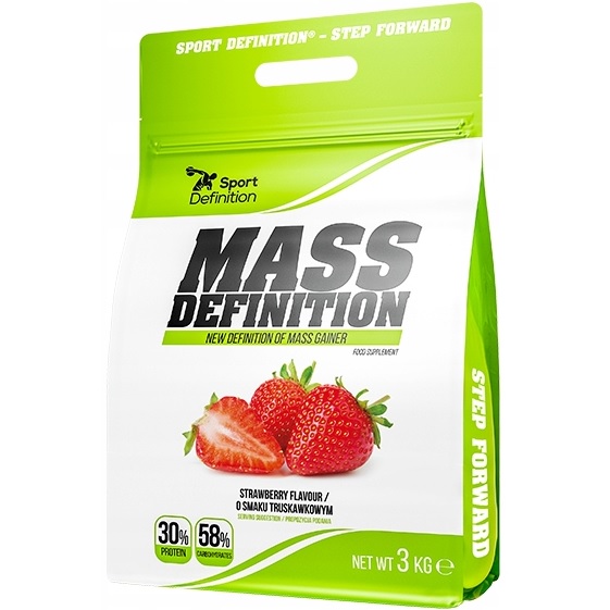 Sport Definition Mass Definition 1000g to odżywka typu mass gainer z wysoką zawartością białka (30%) i węglowodanach o zróżnicowanym indeksie glikemicznym, pochodzących z 3 źródeł. Białko użyte w Mass Definition to wyłącznie najlepsza do budowy mięśni frakcja pochodzenia serwatkowego, o doskonałym potencjale anabolicznym, aminogramie i świetnej przyswajalności.
